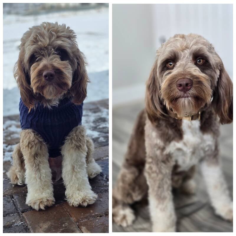 Aussiedoodles from Ramirez Family Doodles have very little undercoat, reducing shedding and making them potentially hypoallergenic. Regular grooming is essential to prevent tangles, especially for those with wavier or curly coats. Just like humans with hair that grows it needs to be brushed daily and maintained by a groomer every few months to reduce matting. Like Poodles, Aussiedoodles require gentle ear cleaning to prevent infections. Trust your neighborhood groomers expertise to guide you in caring for your new family member.
